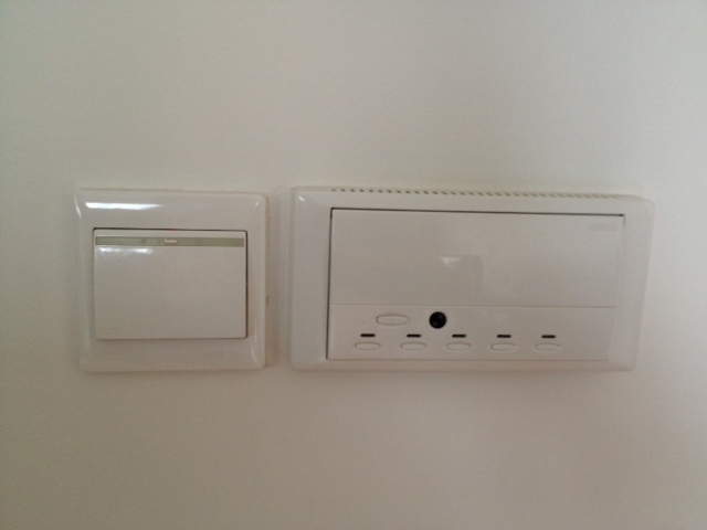 The one on the right is a dimmer for the overhead lights. But for fun with the foreigners, why make the buttons go in order from dimmest to brightest? Nope. The third one is (usually) the brightest, the first is somewhere in the middle, I think the fourth is the dimmest but I swear I have to play with it every time I turn the lights on because it’s never the same twice. If I do get the right brightness on the first try, we celebrate the success. Ah, the little things.